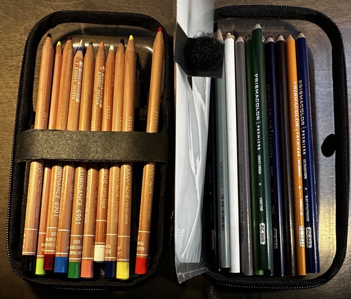 I needed to purchase some supplies, which is always a fun excursion. I had hoped to get a few more Caran d’Ache Luminance (I seem to only have 11…which is a weird number and not enough to start a proper class), but the store didn’t carry them. I ended up getting a 24 set of Primacolors, which were also recommended by Sandy.